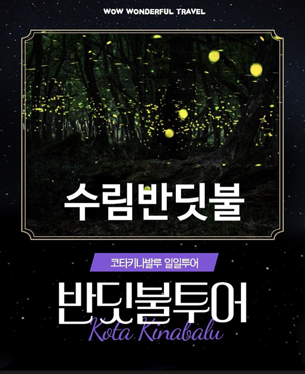 포함사항 : 반딧불투어 픽업샌딩 왕복차량, 수림가든 포토스팟이용, 곤충박물관(Bugs Museum), 저녁식사,