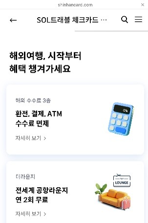 연회비 없는 체크카드, 신한 SOL트래블 체크카드입니다.
