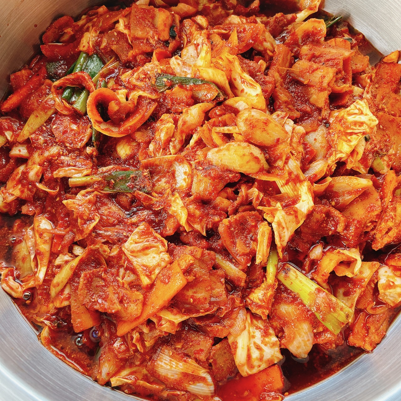 2023년 6월 메뉴개편! 제육쌈밥! : 제육볶음, 쌈채소, 야채와 쌈장, 마늘, 볶음김치, 오이무침, 감자볶음, 부침개, 등